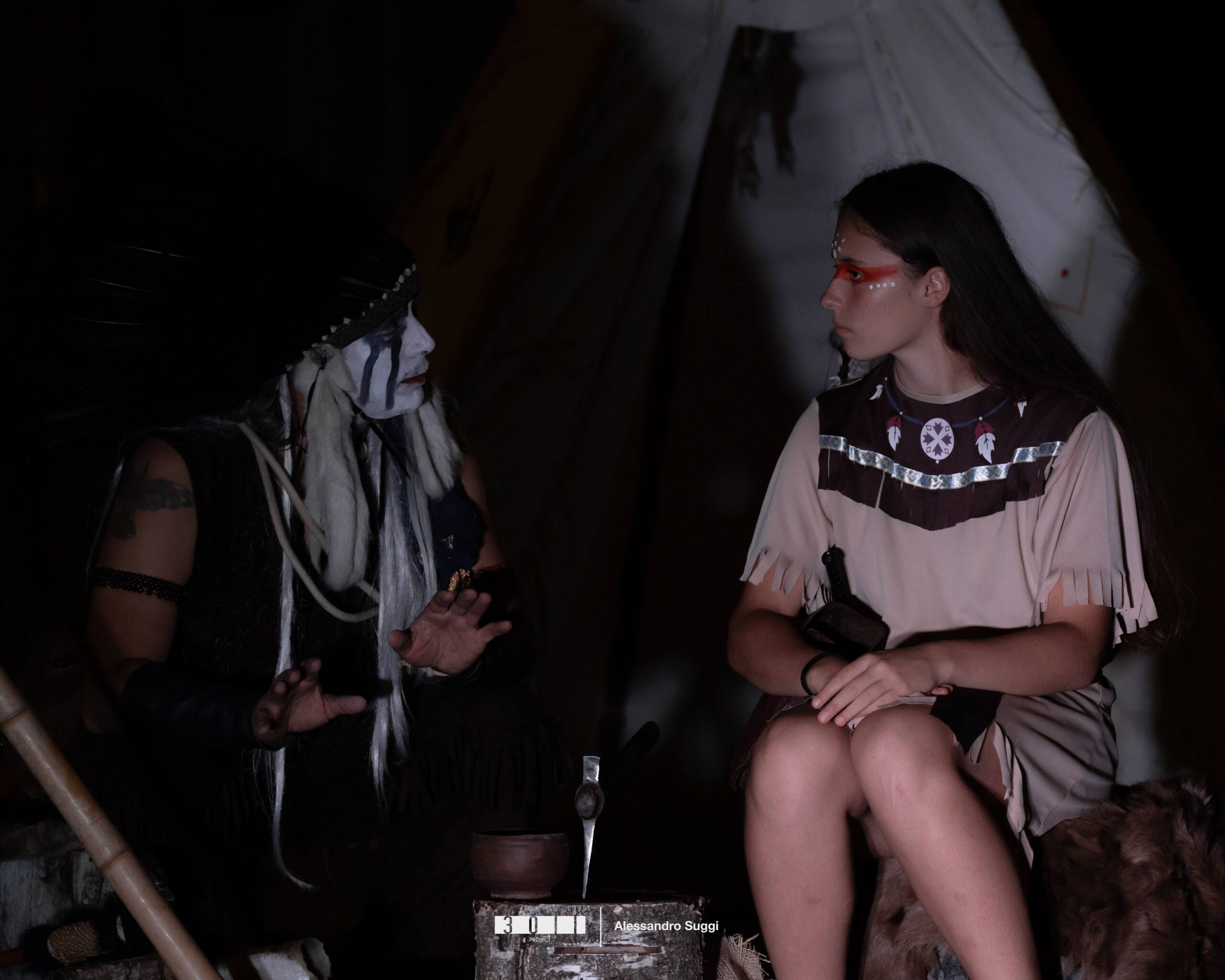 Il tutto è accompagnato da una voce fuori campo che narra la storia oltre che offrire interessanti curiosità sulle pratiche dei nativi. Ringraziamo tutto lo staff e gli attori del Parco degli Acrobati, Nicolò Blasi e la band 432Hz per la serata.